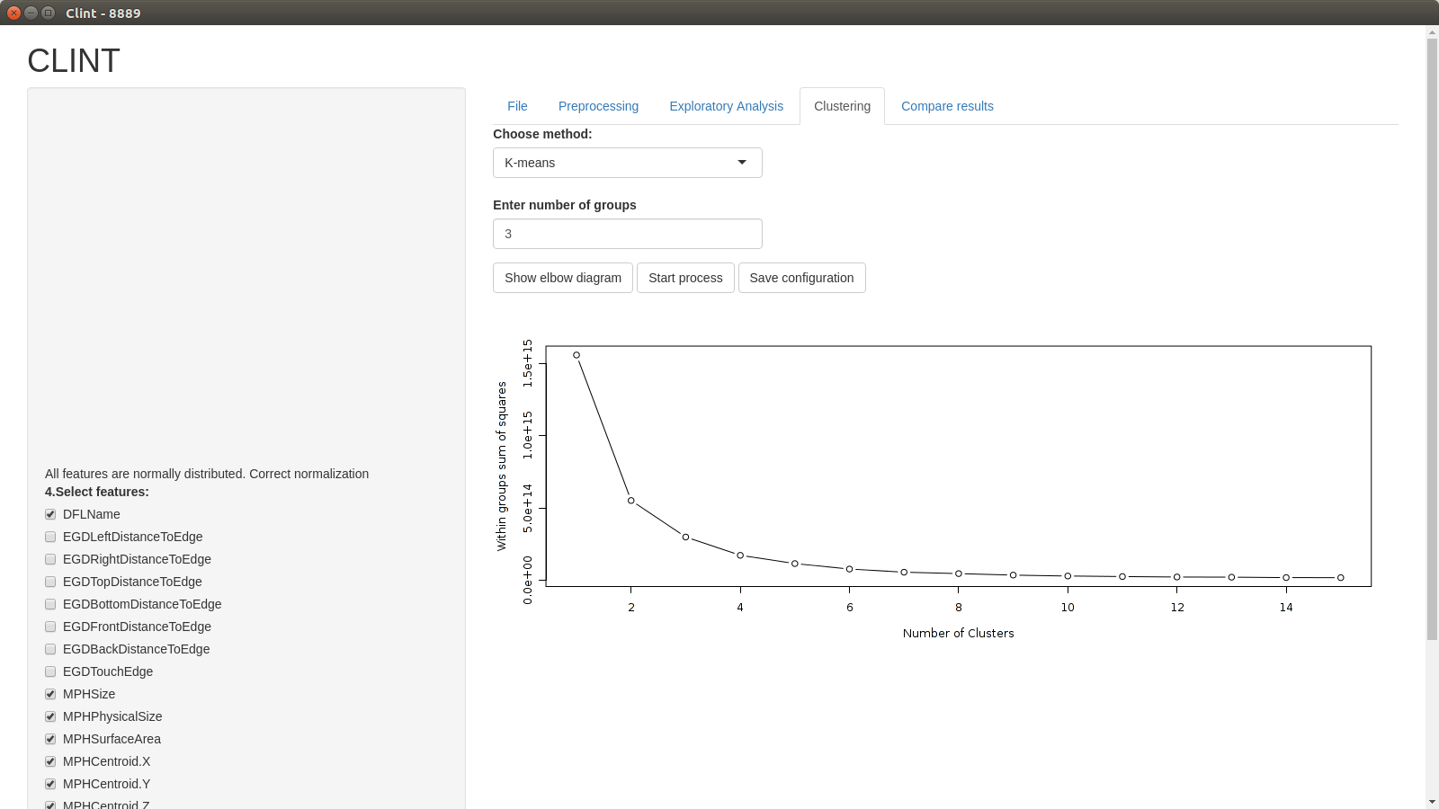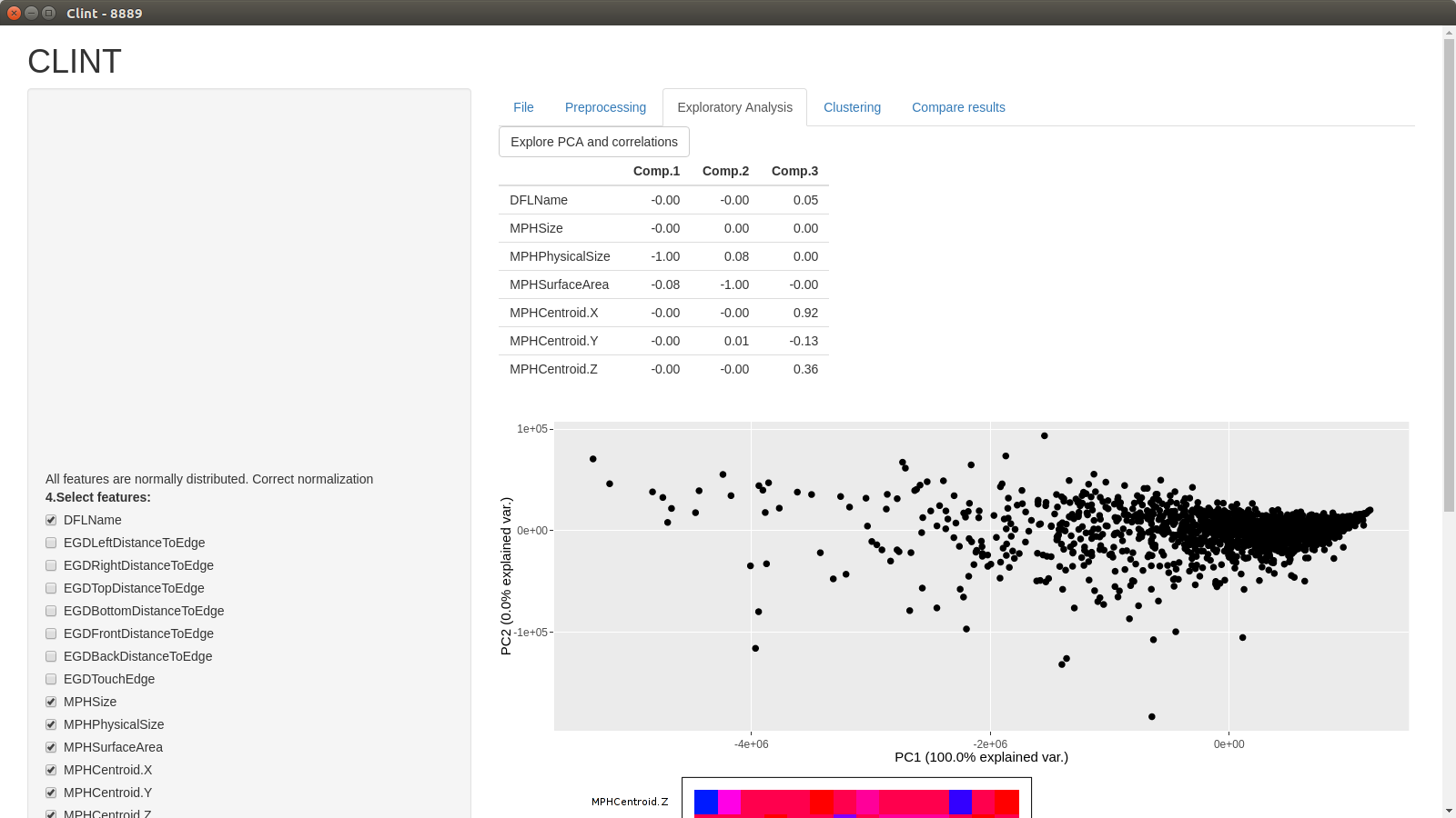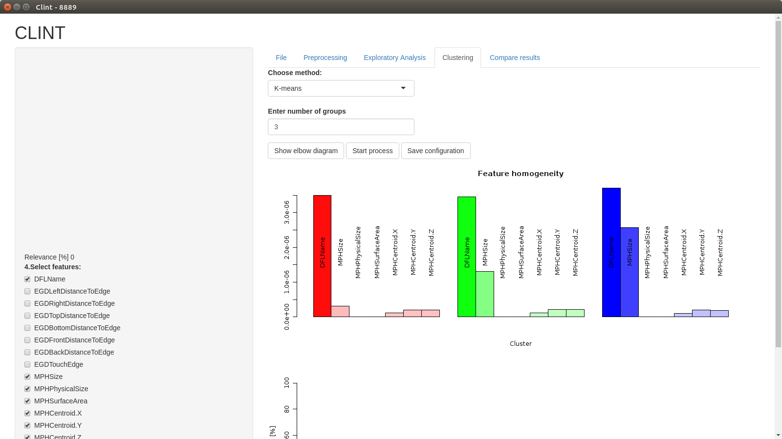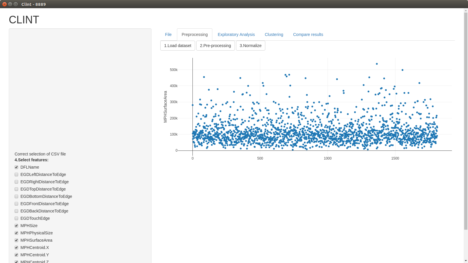 Clint Explorer is an application that uses supervised and unsupervised learning techniques to cluster neurobiological dataset. The main contributions of this software is that incorporates the expert’s know-how in the clustering process. Besides, it allows to interpret the results providing different metrics.