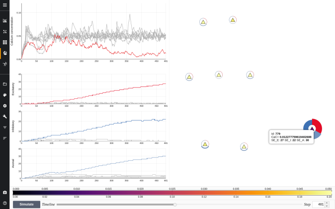 The nervous system is an active multidisciplinary research line where, thanks to modern computer neuroscience techniques, it is possible to model and analyse the complex process of the brain, for example, using simulation models, such as the Homeostatic Structural Plasticity Model (HSPM), that is based in the key idea of the neuronal homeostatic equilibrium, where the neurons need to maintain a desired level of electrical activity, deleting synapses when neuronal activity is too high and providing new synaptic contacts when activity is too low. This simulation model generates a big amount of information, very difficult to analyse through traditional methods such as tabular data. To ease this task, this tool apply a novel visualisation technique based on the representation of the neuronal information through the use of abstract levels and a set of views composed by schematic representations on each level. This hierarchical representations allow users interact and select the appropriate representation according to the task to achieve, modifying the degree of detail of the information to be analysed in an simple and intuitive way, through the navigation of different views at different levels of abstraction. Each view represents only the variables related to the desired tasks, avoiding overwhelming saturation of information. The multilevel structure and the design of the representations constitutes an approach that provides organized views that facilitates visual analysis tasks.